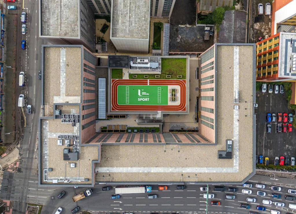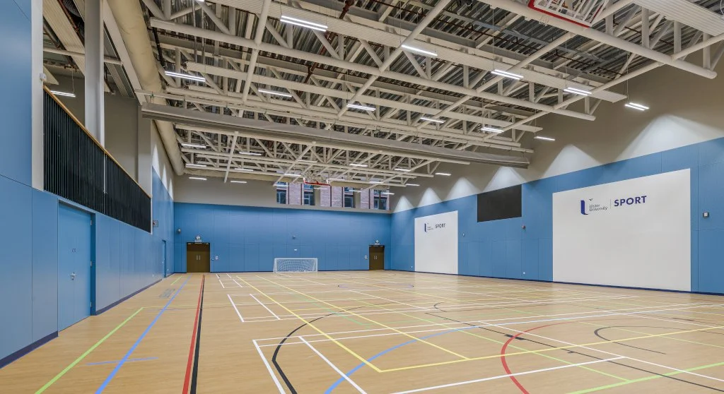 The main challenge was the late introduction of a university standard sports hall within what was originally conceived as an external atrium, fully enclosed by the surrounding student accommodation. Programme, timing and logistics were critical, as the PBSA works needed to advance ahead of sports hall planning consent and detailed design. Adding further complexity, the client brief required the roof of the approximately 20m x 35m clear span sports hall to support vibrant student amenity spaces, including a running track above, creating demanding structural and performance requirements.