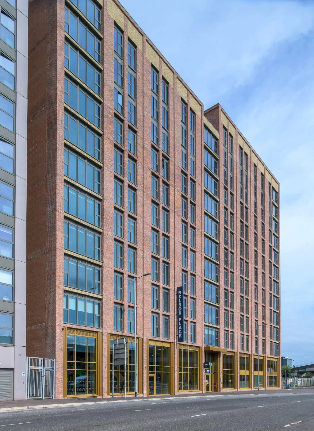 Nelson Street is a 790 bed purpose built student accommodation development in Belfast City Centre. This scheme delivered a reinforced concrete framed student residence rising twelve storeys on a brownfield site, arranged in a neat C shape around a central space. The project also provided a high quality sports hall facility for Ulster University formed utilising a trussed steel frame.